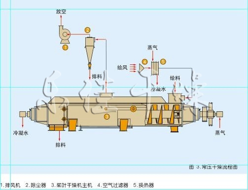 該淀粉槳葉干燥機(jī)可對(duì)膏狀、顆粒狀、粉狀、漿狀物料間接加熱或冷卻,可完成干燥、冷卻、加熱、滅菌、反應(yīng)、低溫燃燒等單元操作。設(shè)備中特殊的楔型攪拌傳熱漿葉具有較高的傳熱效率和傳熱面自清潔功能。
